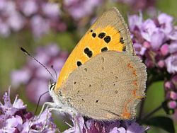 Adfærd: Lille ildfugl (phlaeas) er svær at følge med øjnene i den hurtige uregelmæssige zigzagflugt. Heldigvis sætter den sig ofte dels på jorden og dels for at suge nektar på mange forskellige blomster.