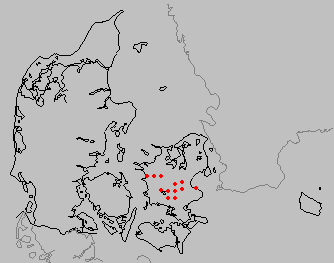 På kortet, der på ingen måde må anses for komplet, ses fund af c-aureum efter 1980. Det fremgår, at arten er fundet i et område der strækker sig fra Halleby Åmose i vest til Magleby skov i øst, faktisk svarende til hvad Skat Hoffmeyer beskrev i 1966.