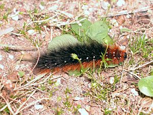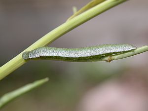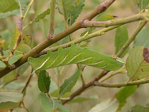 | Larven af aftenpåfugleøjet (S. occelatus) er en af mange arter der lever på pil. (fot. P. Stadel) | Larven af bjørnespinderen (A. caja) lever mange forskellige slags urteagtige planter. (fot. P. Stadel) | Larven af dagsommerfuglen aurora (A. cardamines) lever af frøkapsler af korsblomstrede planter. (fot. P. Stadel) |